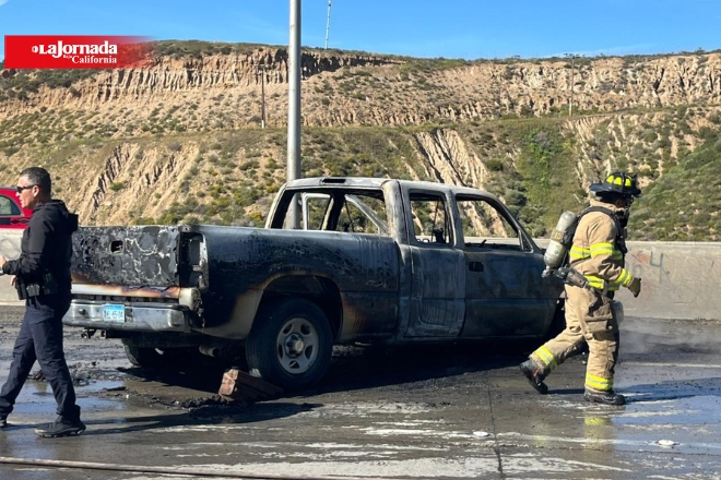 En el municipio de San Quintín, a la altura del poblado Camalú, un camión fue incendiado, bloqueando el tránsito de la carretera Transpeninsular