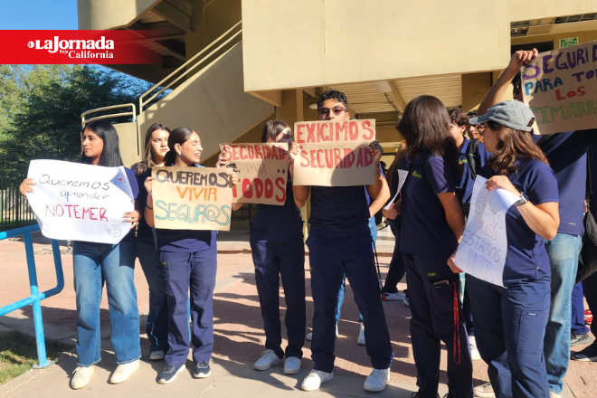 Con pancartas en mano en las que reclaman seguridad, protagonizaron una marcha dentro de la misma UABC -ubicada en el bulevar López Mateos-, para denunciar que la presencia policiaca no es suficiente, además de que los guardias de seguridad no aplican los protocolos para controlar el acceso a las instalaciones universitarias.