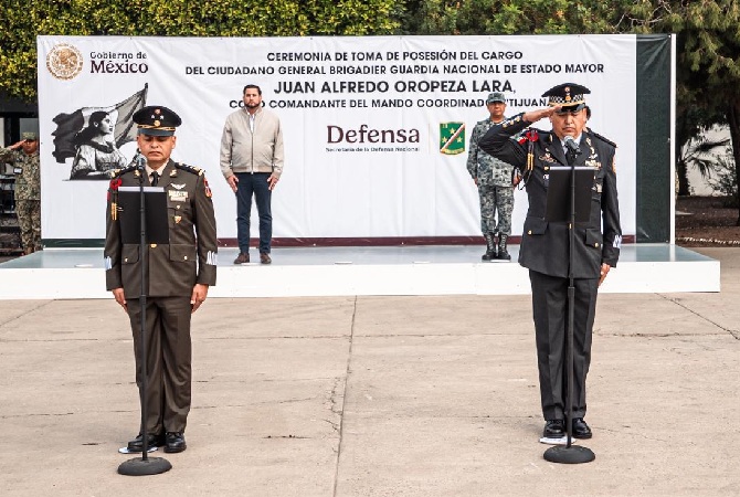 Tijuana, 21 de enero. Durante la toma de posesión del nuevo comandante del Mando Coordinador Tijuana de la Guardia Nacional, Juan Alfredo Oropeza Lara, el alcalde Ismael Burgueño Ruiz calificó como «fundamental» el papel que desempeñan las Fuerzas Armadas «en la construcción de una Tijuana más